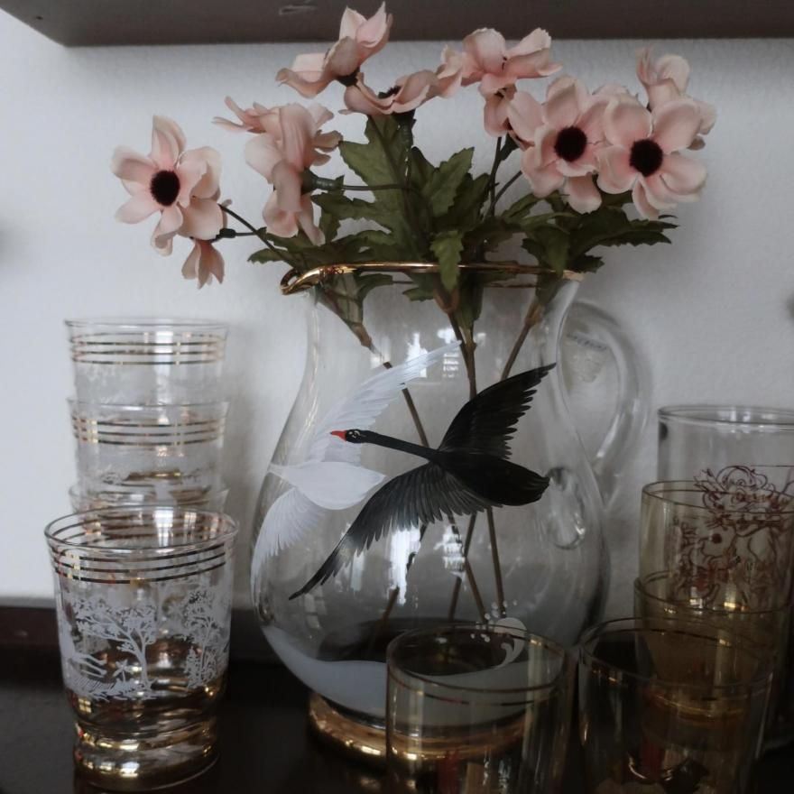 オーストラリアで買い付けましたVintage Hand Painted Swan Glass pitcher Jug(B210)/ビンテージ ハンドペイント ガラス ジャグ/ピッチャーです。