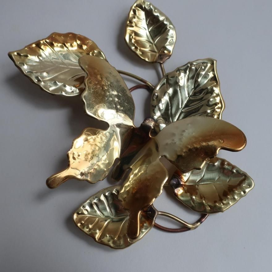 アメリカで買い付けてきたVintage Brass leaves and Butterfly Wall Deco(B235)/ビンテージ 真鍮 葉っぱ×蝶々 モチーフ ウォール デコ です。