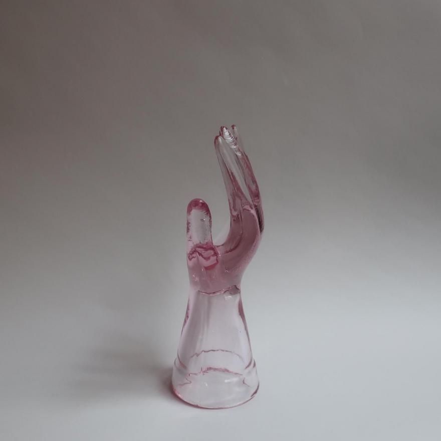 アメリカで買い付けましたVintage Pink Glass Hand Ring Holder (B323)/ビンテージ ピンクガラス 手 モチーフ オブジェ リングホルダーです。