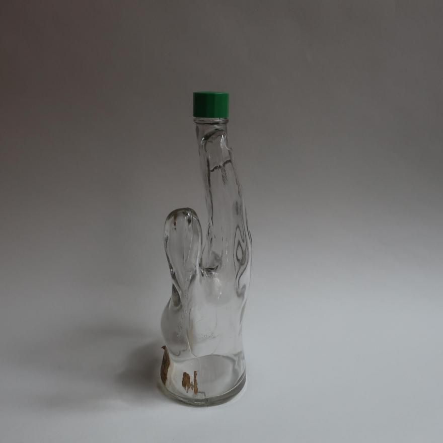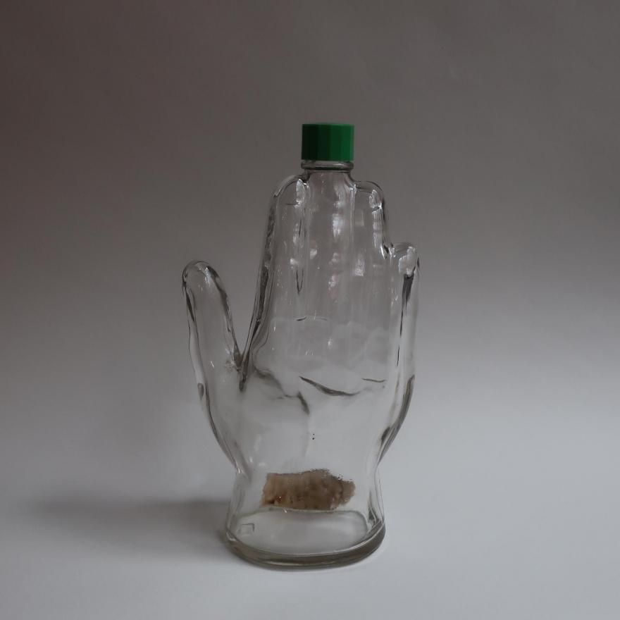 アメリカで買い付けしましたVintage Hand motif glass bottle(B325)/ビンテージ ハンドモチーフ ガラス ボトル 瓶です。