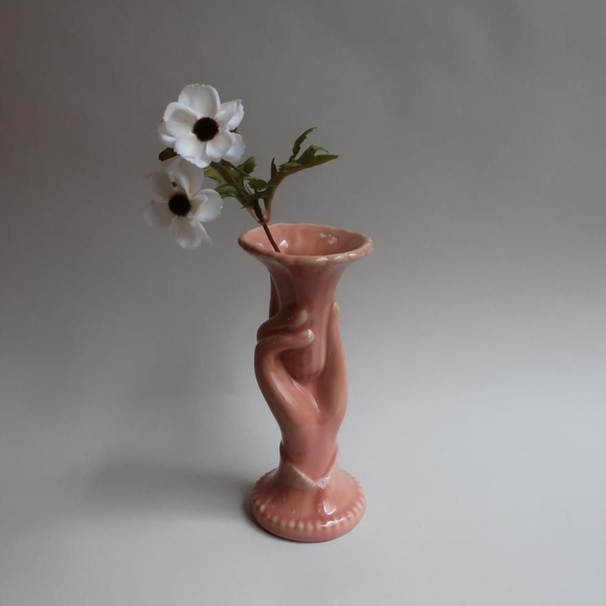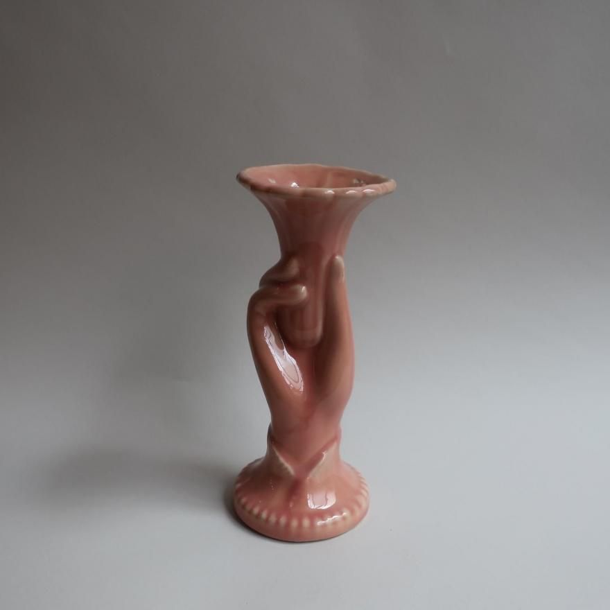 手のデザインの花瓶は当時色々なブランドから出されていますが、Shawnee Pottery社のものは1940年代頃と古く、シンプルでぽってりしたシルエットと絶妙なカラーが可愛いなと思います。