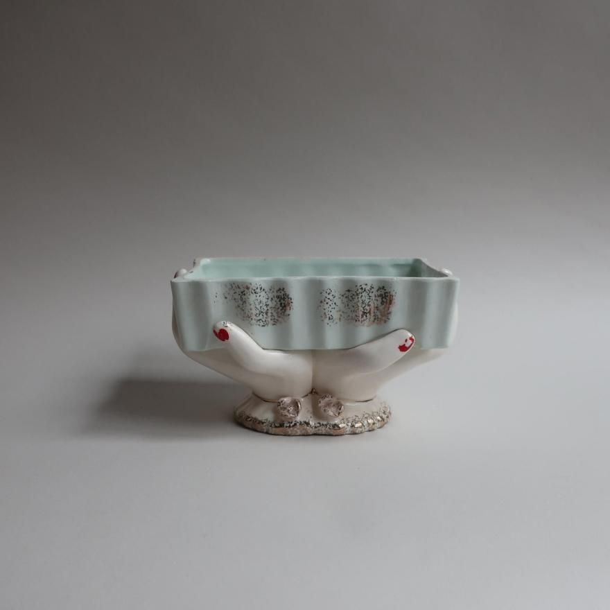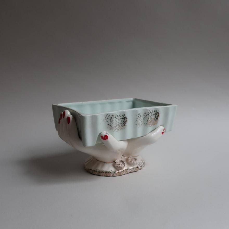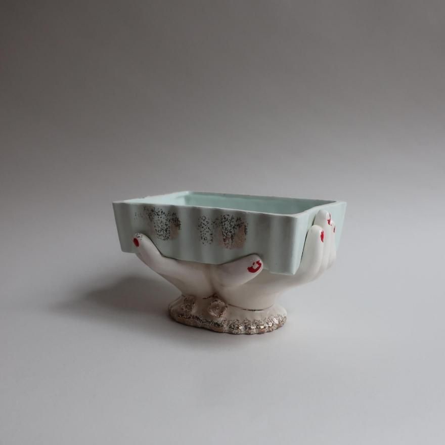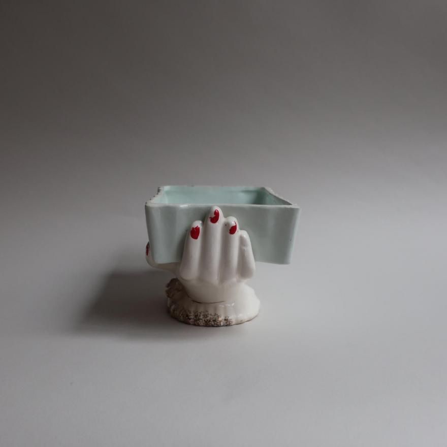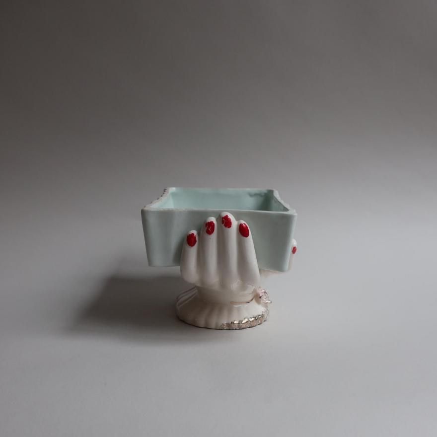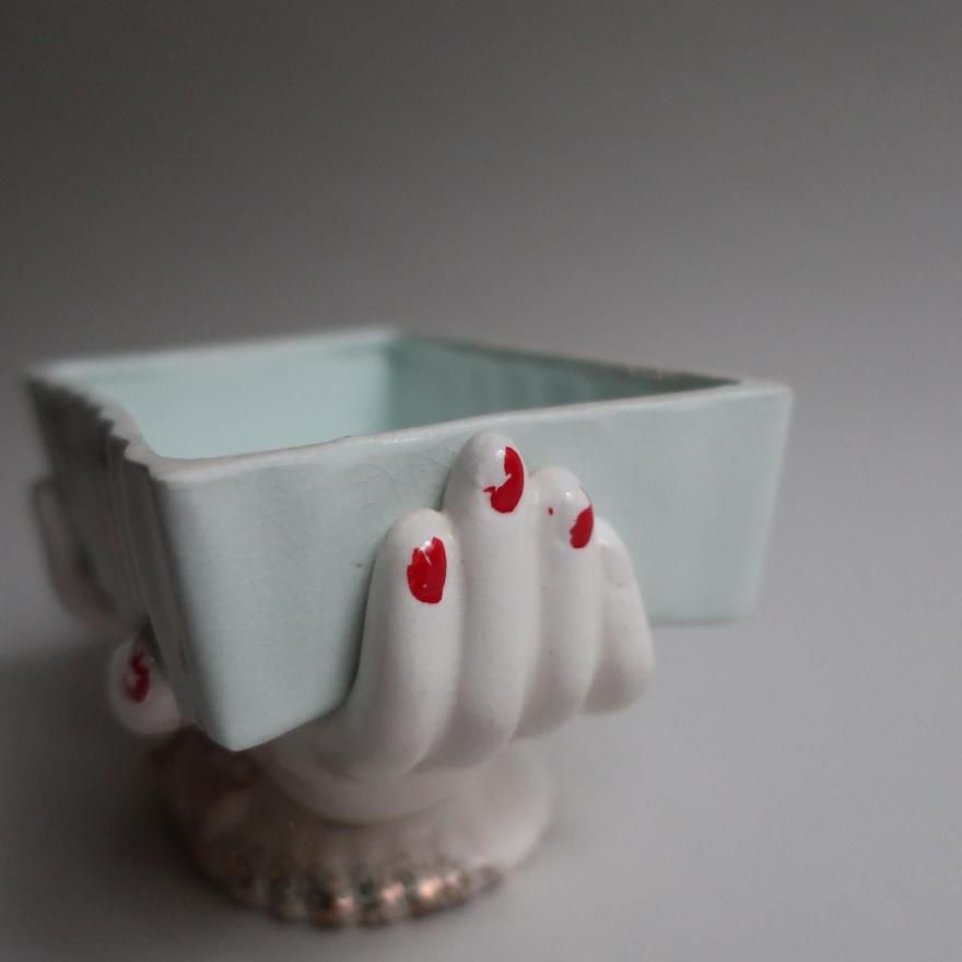 めずらしい形のデザインの手モチーフの小物入れになります。
