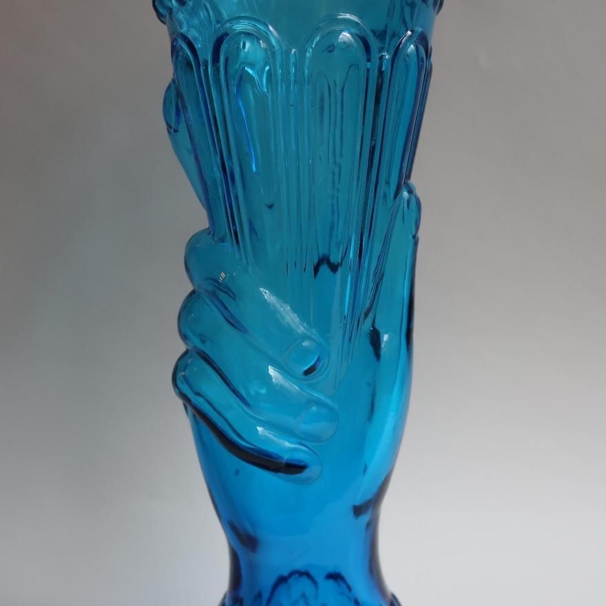 アメリカで買い付けてきましたVintage RARE Large Blue Hand Motif Flower Vase (B344)/ビンテージ ガラス 手モチーフ 花瓶/フラワーベースです。