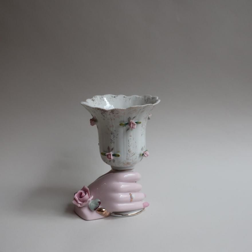 手でゴブレットを持っているデザインで、とても可愛らしい雰囲気で華やかなアイテムです。