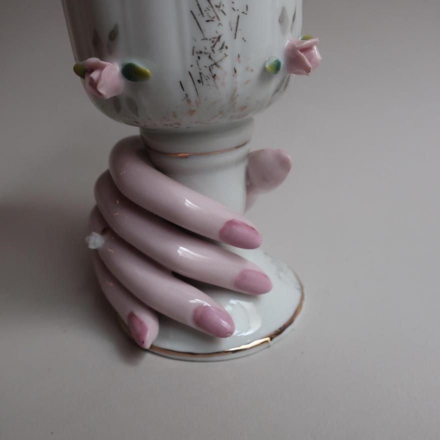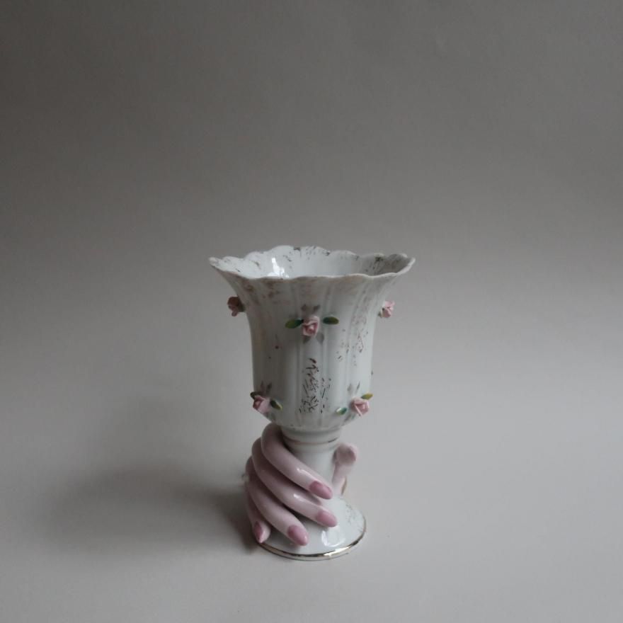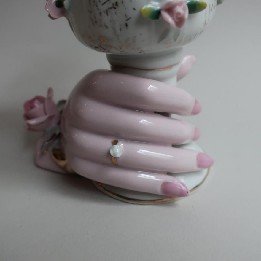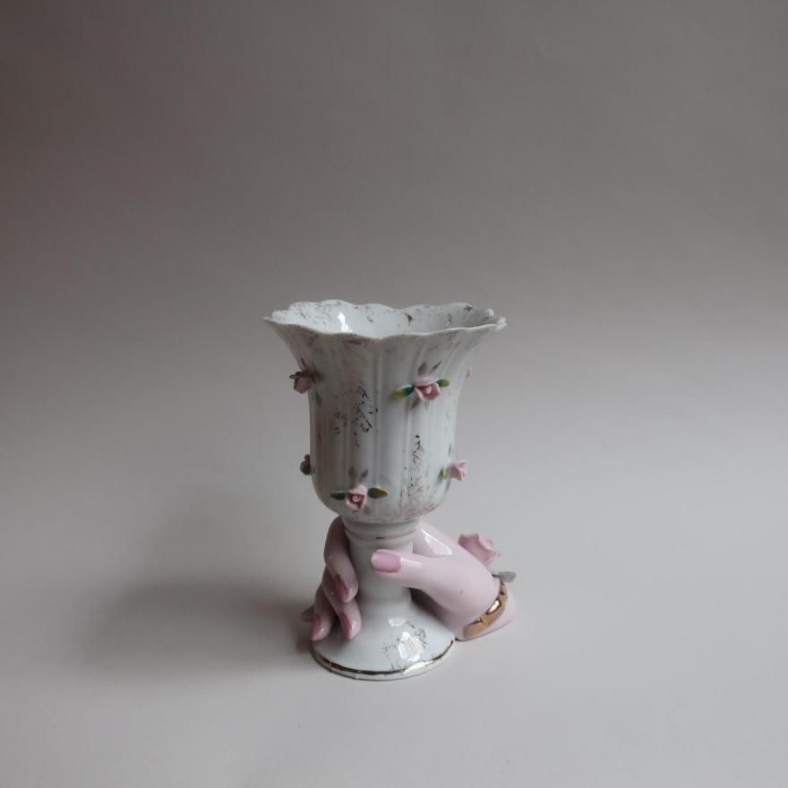 アメリカで買い付けてきましたVintage 1950s Ceramic Lady's Hand Motif Holding Goblet Flower Vase (B351)/ビンテージ 陶器 手モチーフ 花瓶/フラワーベースです。