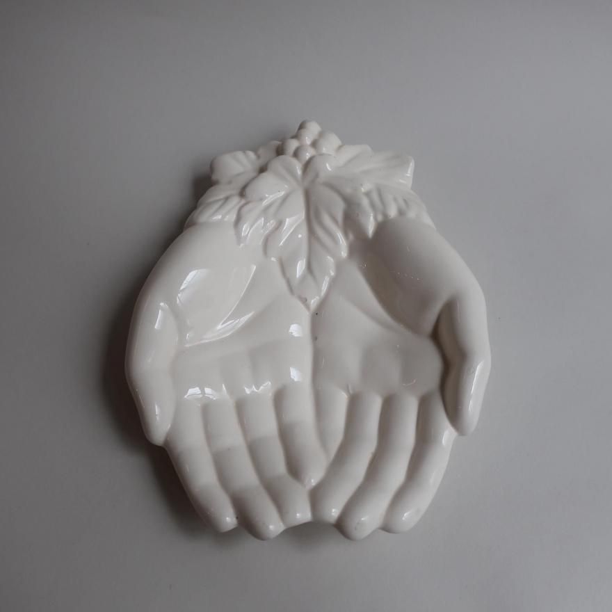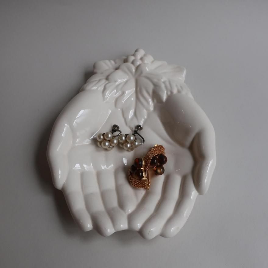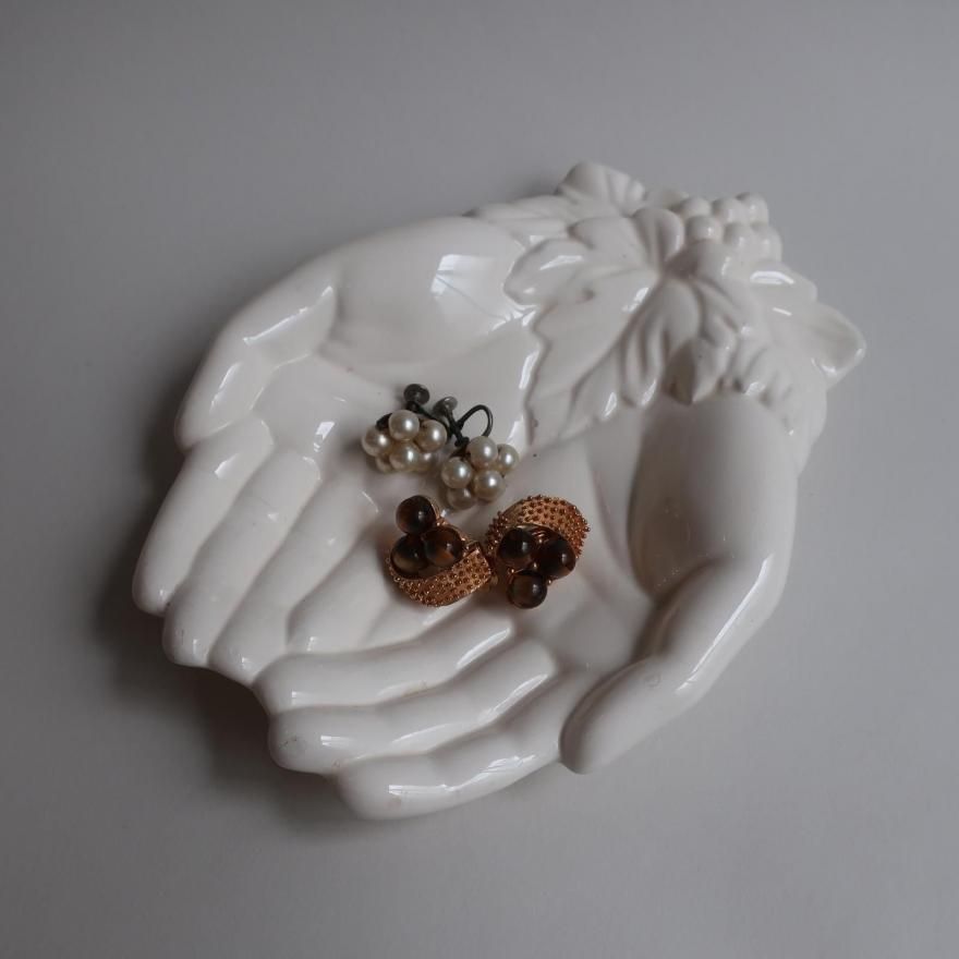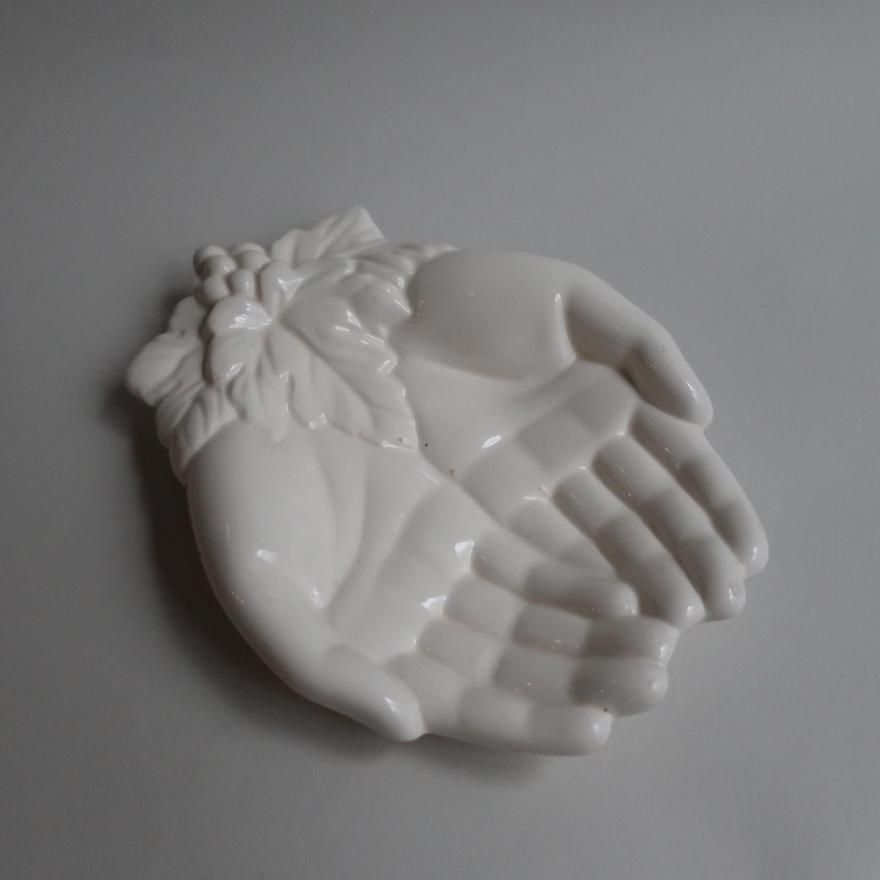 アメリカで買い付けてきましたVintage Ceramic Hand Motif Soap Dish Trinket Jewelry Holder(B354)/ビンテージ 陶器 手モチーフ 小物入れ/ソープディッシュ/トレーです。