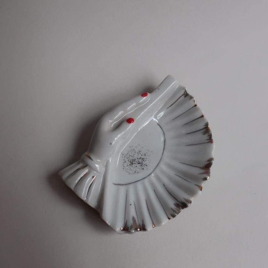 アメリカで買い付けてきましたVintage Made in Japan 1950's Porcelain Hand Motif Trinket Jewelry Holder(B361)/ビンテージ 陶器 手モチーフ 小物入れ/アクセサリートレーです。