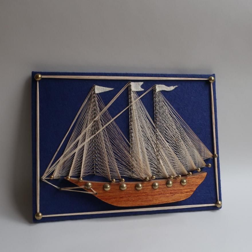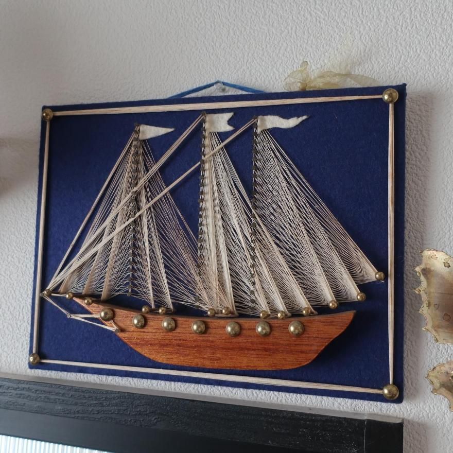 アメリカで買い付けてきたVintage MCM Mid Century Sailboat String Art/Wall Deco(B371)/ビンテージ ヨットモチーフ ストリングアート ウォールデコです。