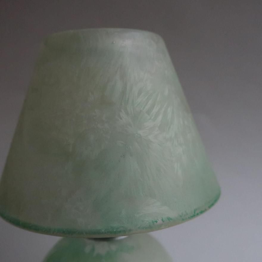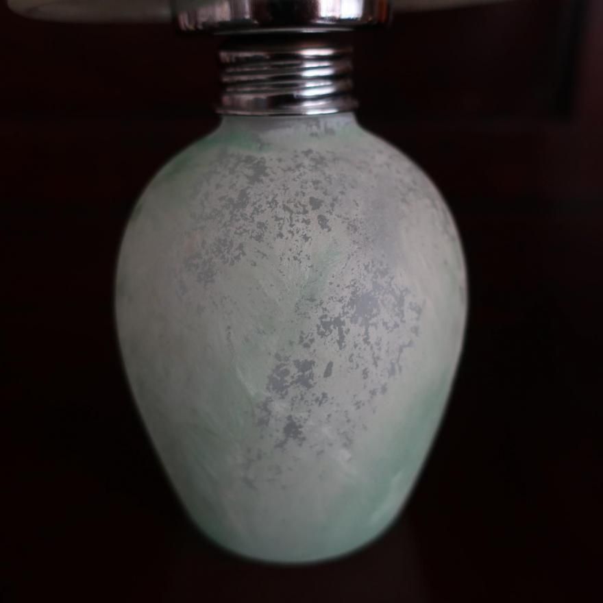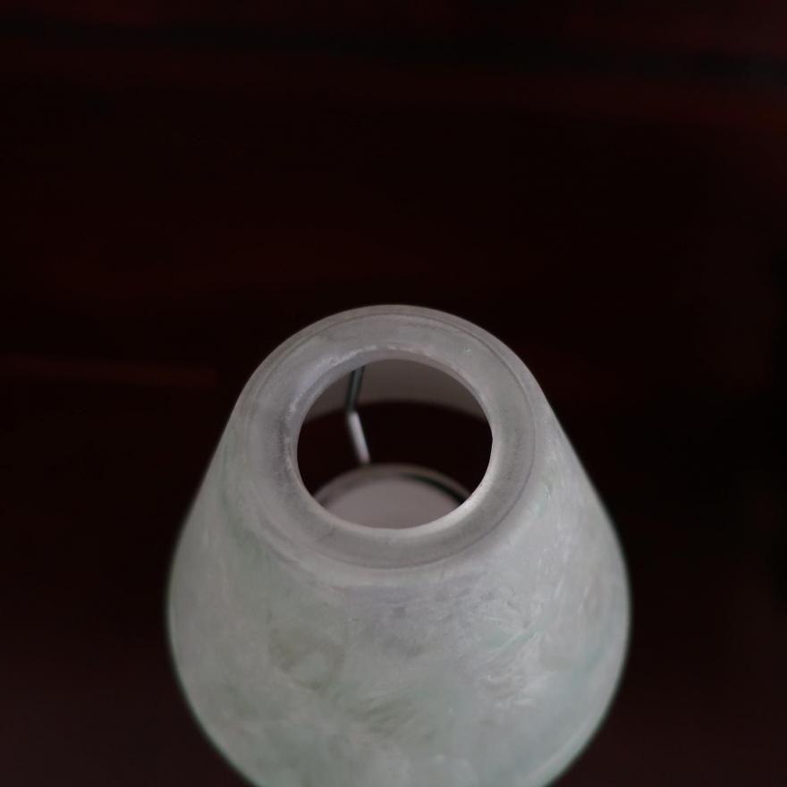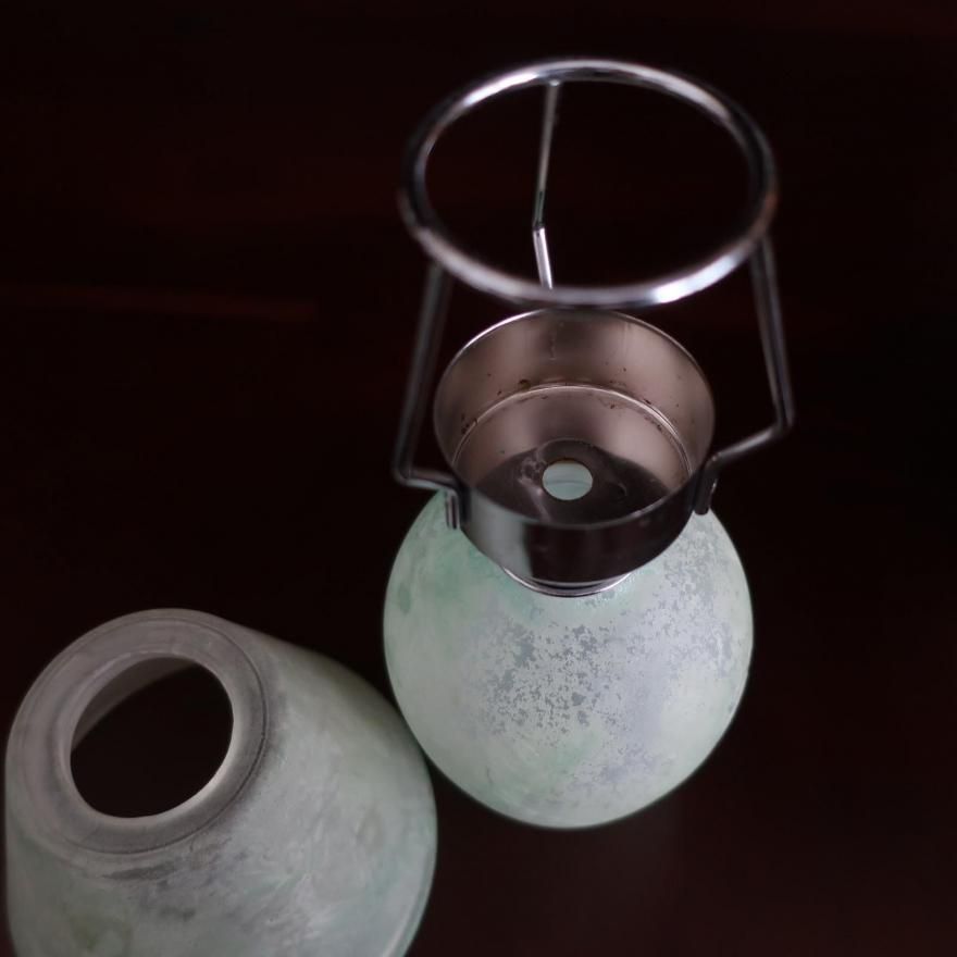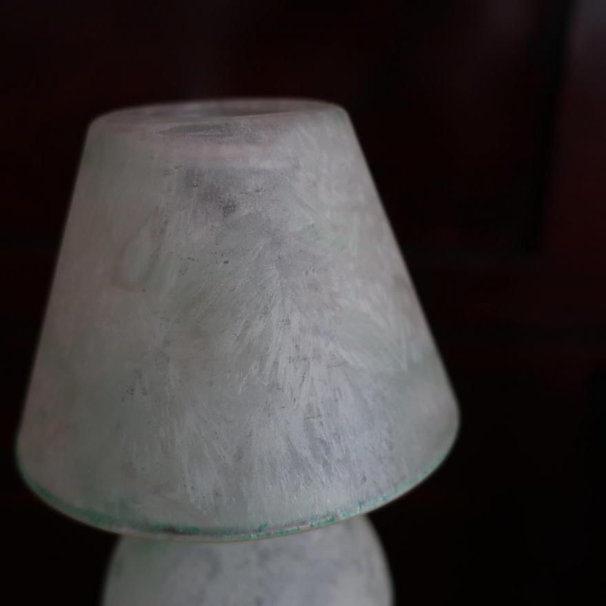 フロストガラスと呼ばれる磨りガラスで、表面には羽のような模様がうっすらとあって、淡いミントグリーンと相まってとても可愛いです。