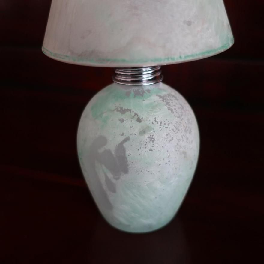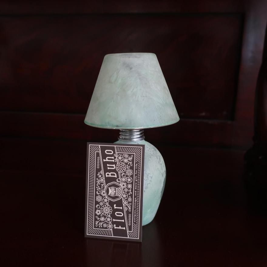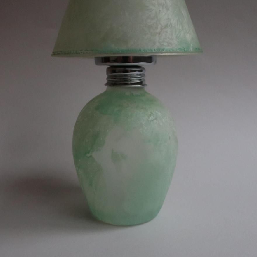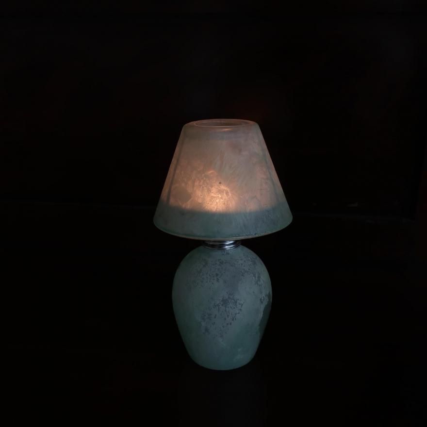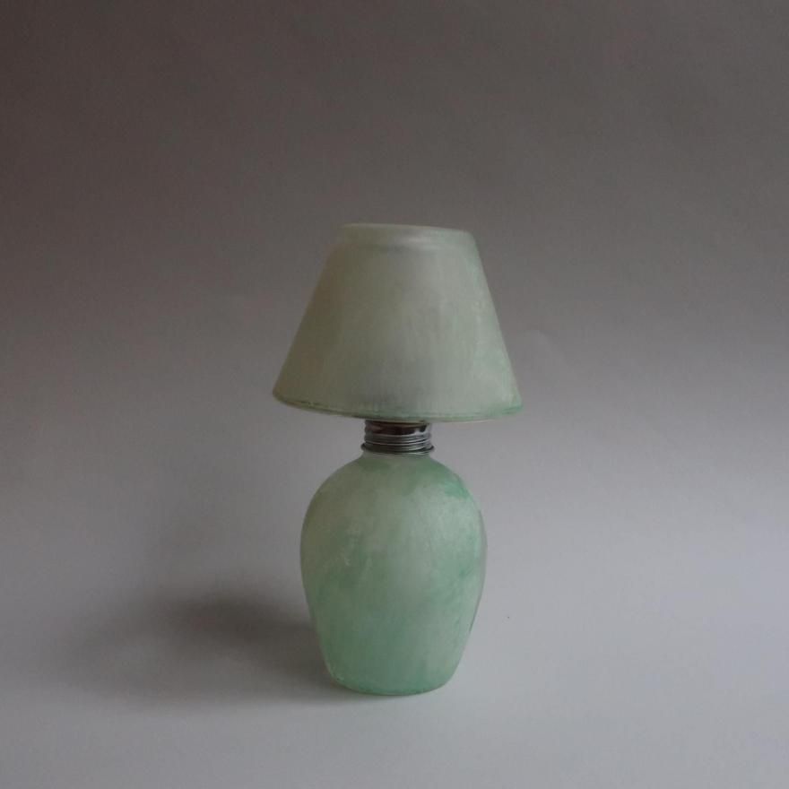 フロストガラスと呼ばれる磨りガラスで、表面には羽のような模様がうっすらとあって、淡いミントグリーンと相まってとても可愛いです。