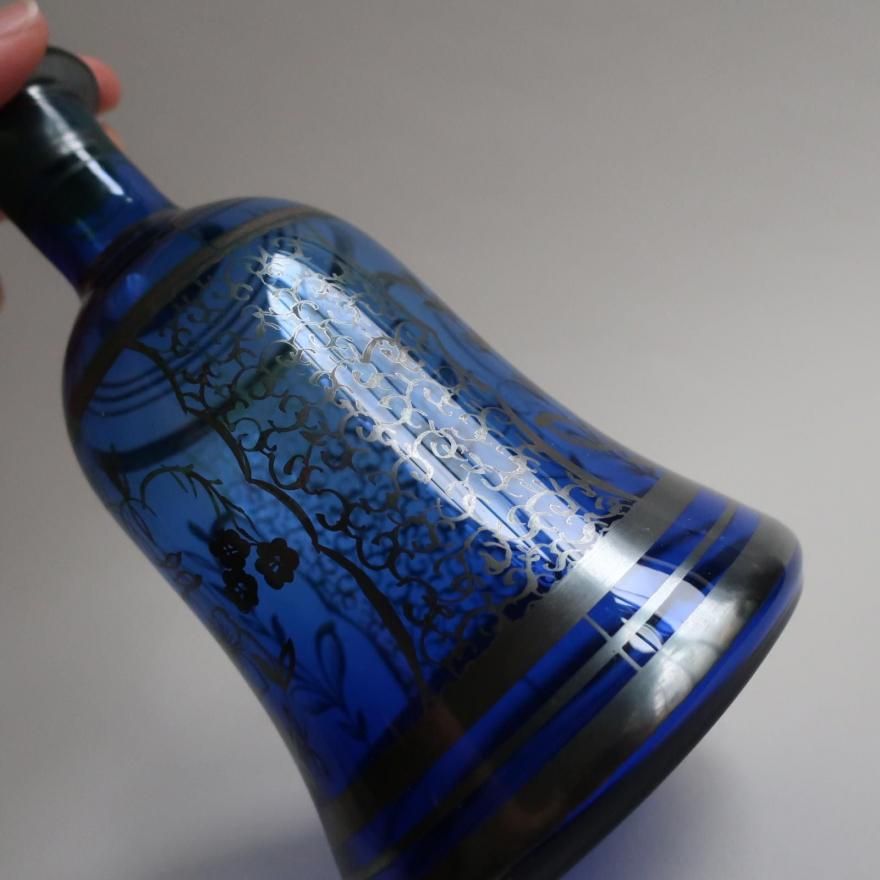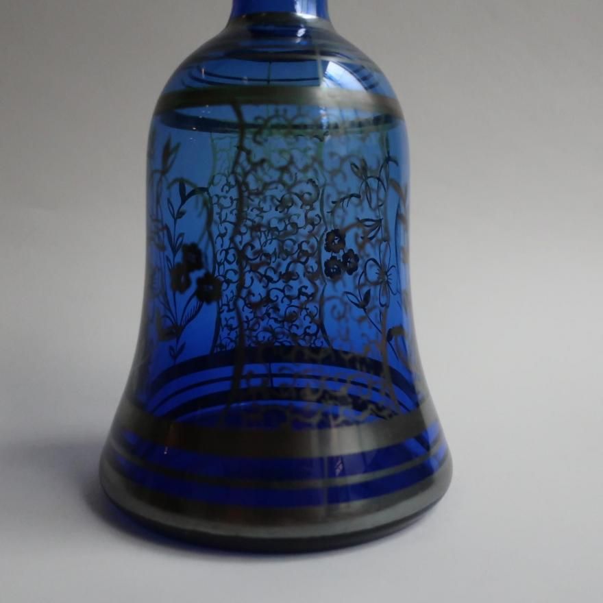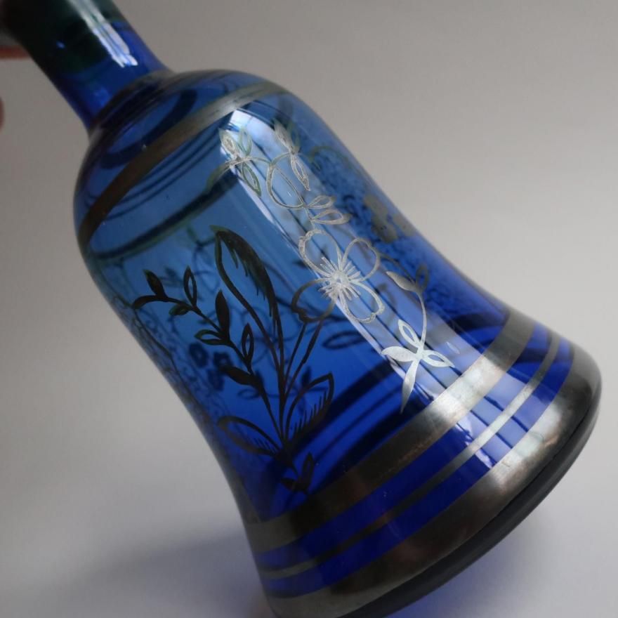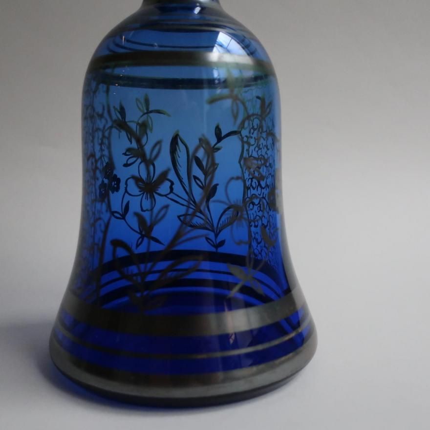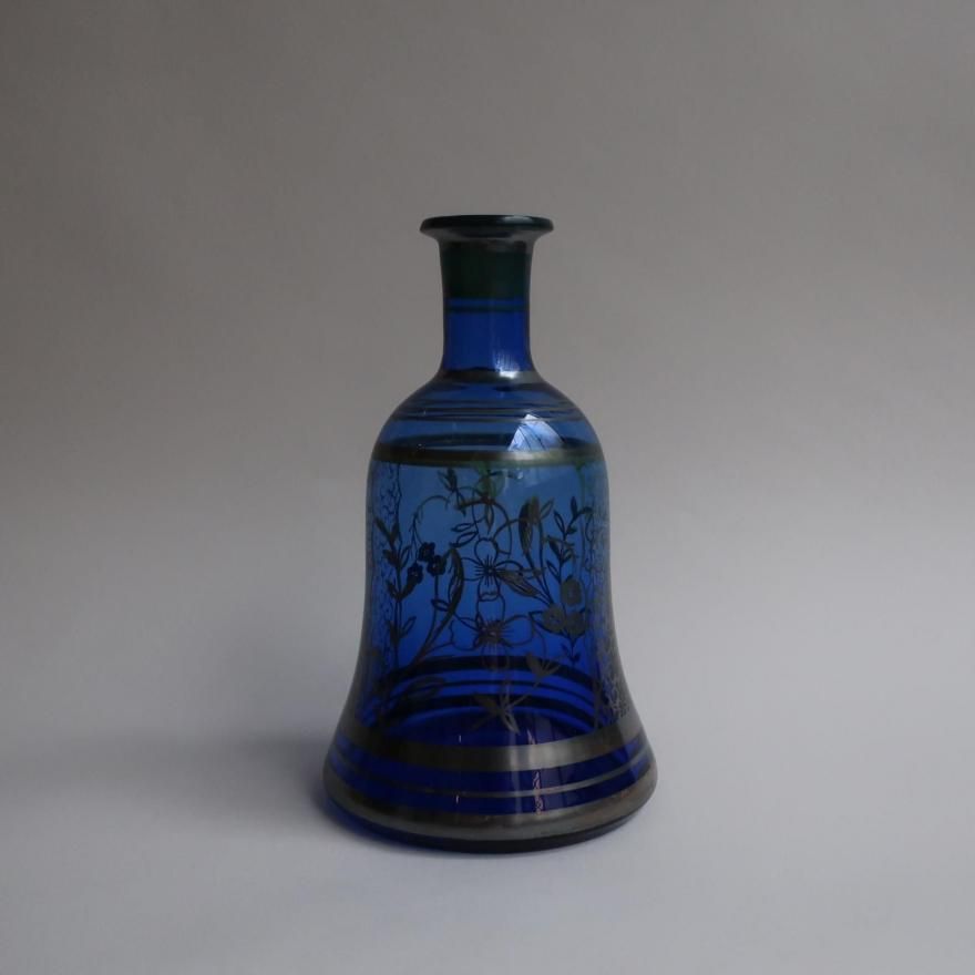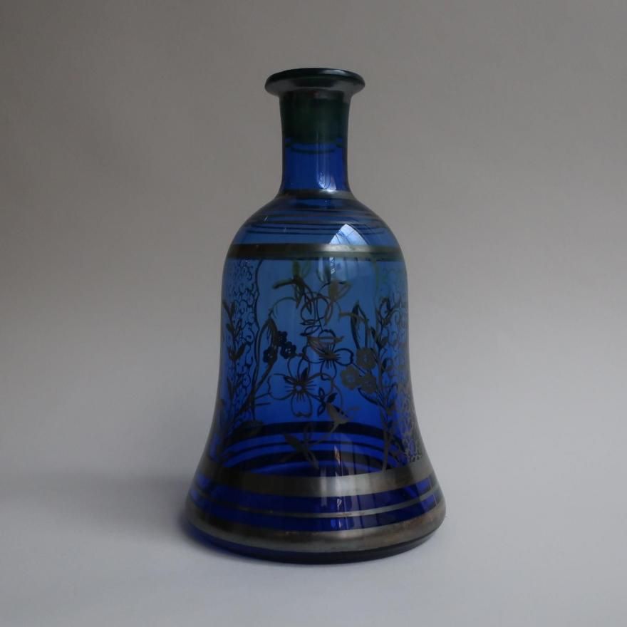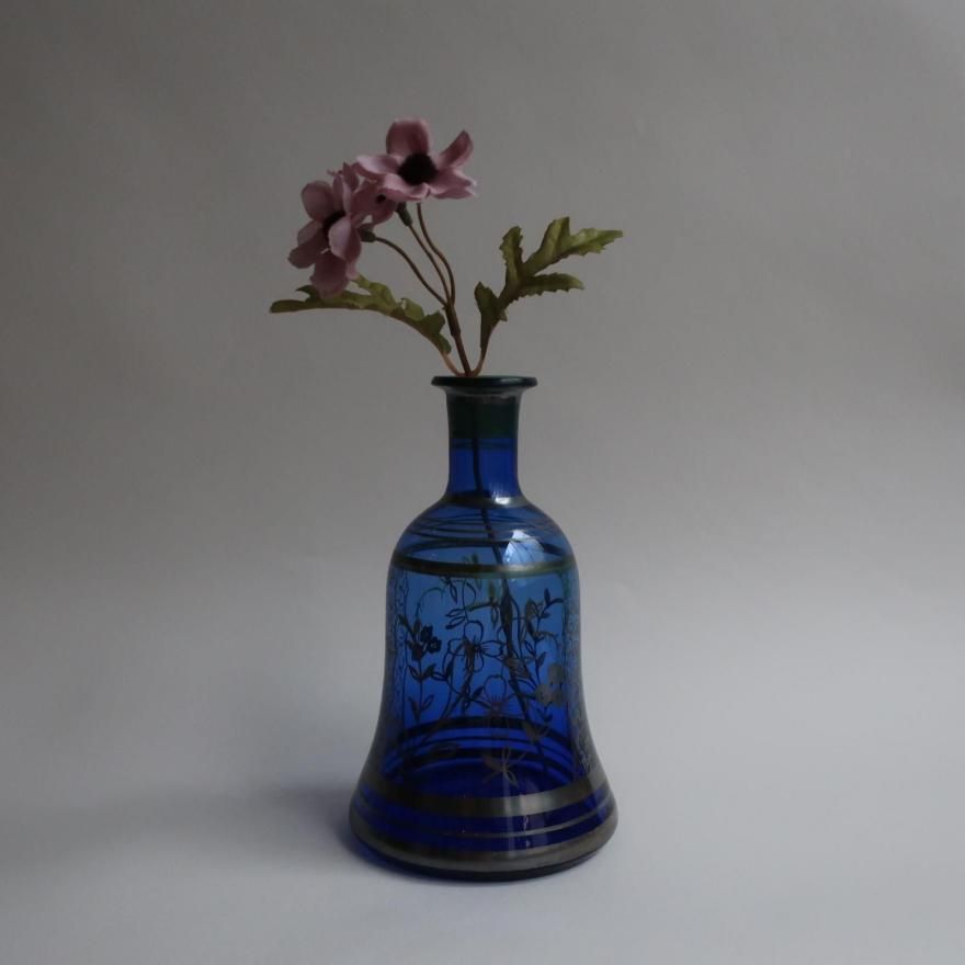 Antique blue glass silver overlay floral Flower Vase (B389)/アンティーク ブルー ガラス 花柄 シルバーオーバーレイ フラワーベース /花器/一輪挿しです。