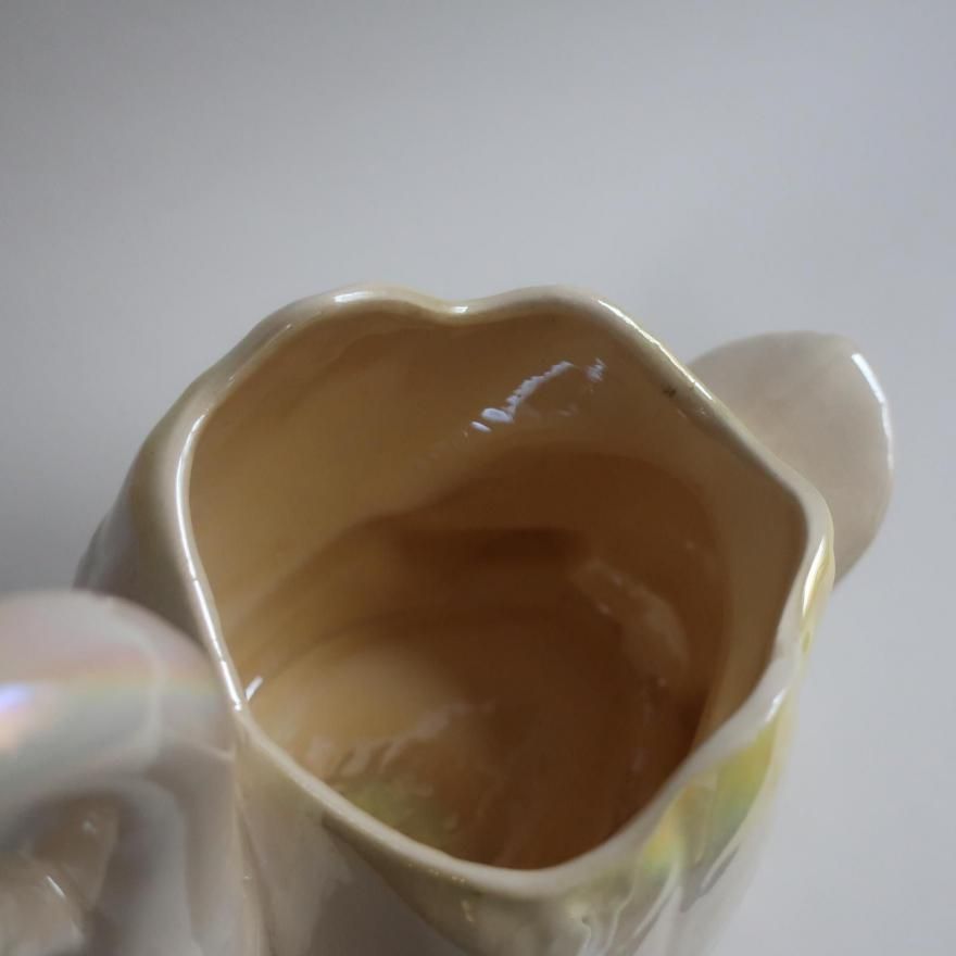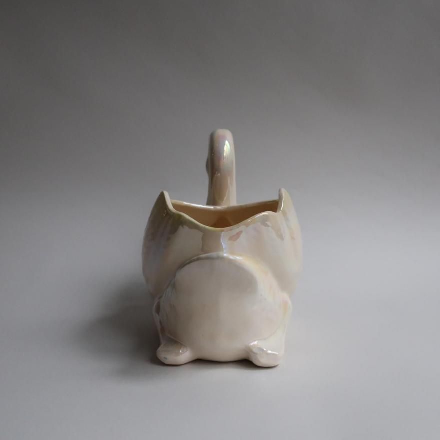 スワンモチーフで少し大きめのタイプで、ばさっとお花を生けてもらうととても可愛いデザインです。オーロラがかった少しカスタードカラーな色味もゴールドで描かれた目も可愛らしい雰囲気です。