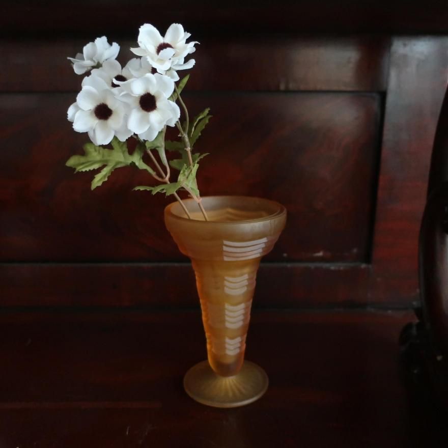 アメリカで買い付けましたVintage Amber Frosted Glass Flower Vase(B401)/ビンテージ フロスト アンバー ガラス フラワーベース/花瓶です。